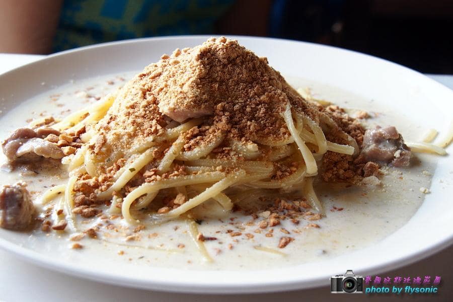 ↓好啦,美好的回憶就寫到這裡為止。拉回到上星期週末,我們到普羅旺斯點了兩道中午餐點。分別是義大麵及蟹肉餅。