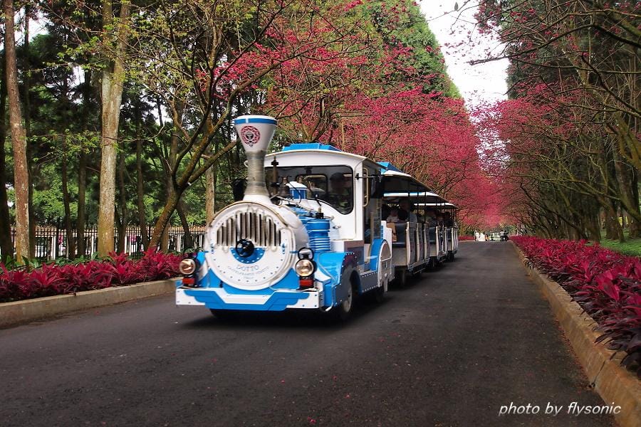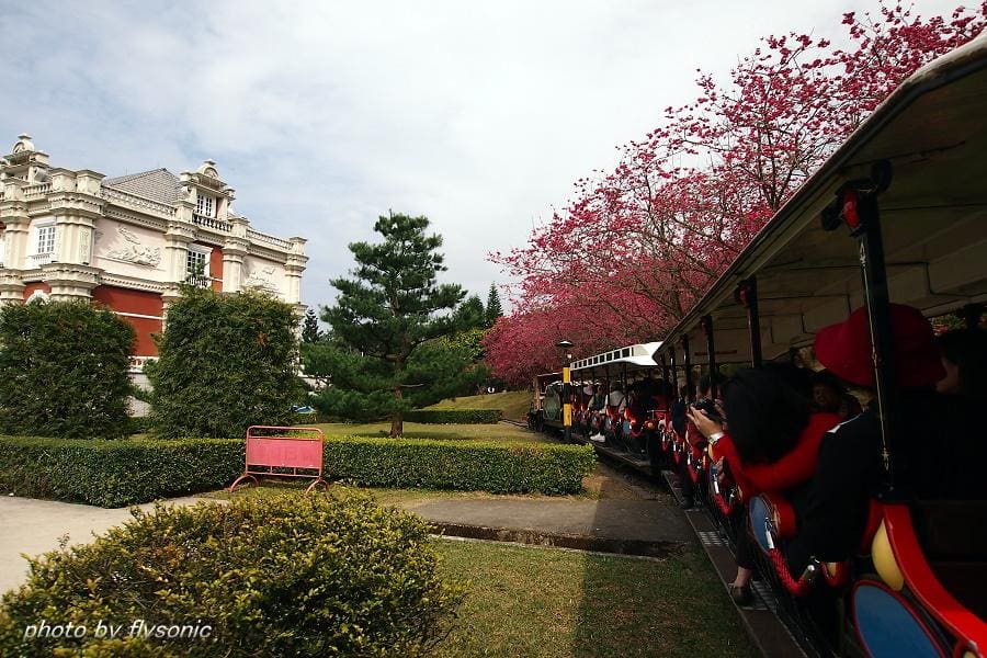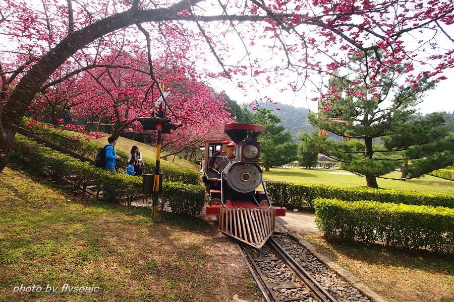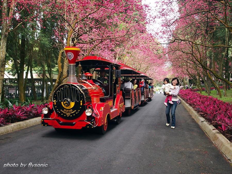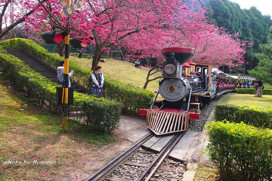 ↙這裡也有小火車,想要看火車過櫻花林的人,不用到阿里山去,這裡也有,不過這裡比較沒有那種天然美景的味道,畢竟是人工造景的。雖然如此,但是只要火車一經過櫻花林,便有一些遊客馬上跑過來卡位搶拍!
