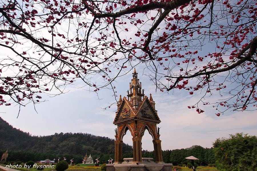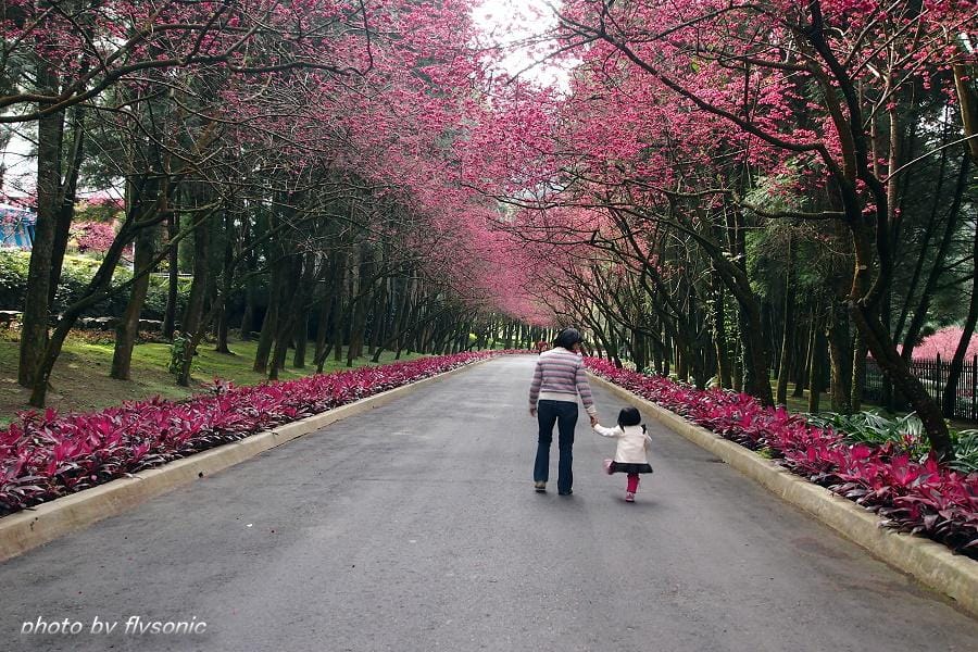 ↙看完櫻花湖後,便沒有再往上走,由於已經快要五點了,因此我們便順著櫻花隧道往回走,因為之前就曾來此搭過纜車,所以這次就沒搭纜車!