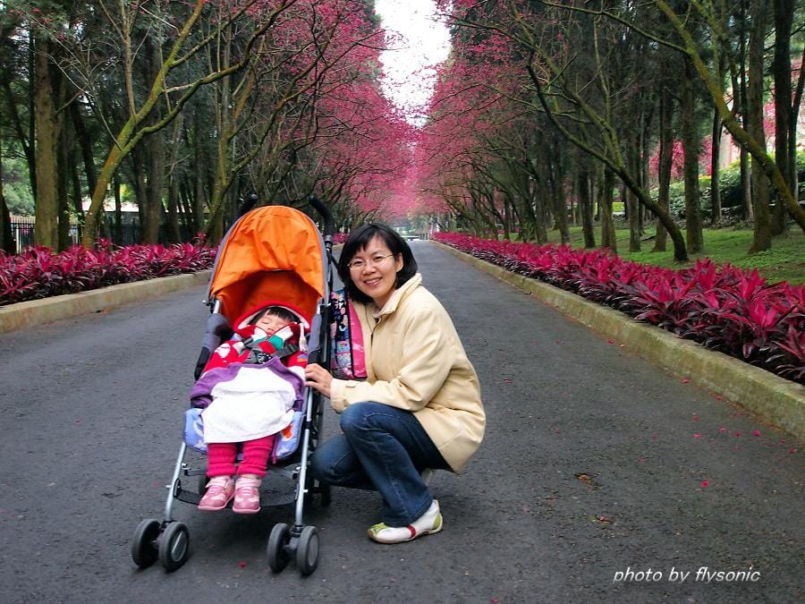 ↙坐玩火車後,我們便往上走,到傳說中的櫻花隧道去走走,沒想到人群還蠻少的!這就是非假日的來玩得好處,雖然是非假日,但是園區仍然有將停了將近一半以上的車輛的!我們來時已經過了盛開的時候,只剩下七、八成左右!