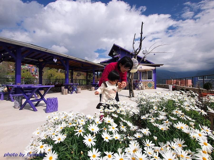 ↙用完中餐後,便在餐廳上方的觀景台走走,剛好法國菊盛開,小寶貝跟她媽媽一起在欣賞漂亮的法國菊!