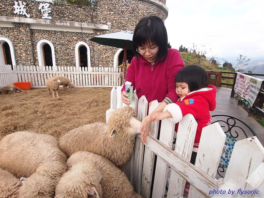 逛完了畜牧步道之後,我們又到青青草原去走走,那裡面有一比較小的羊,在綿羊城堡裡面,在這裡買了兩包羊飼料,由小寶貝蠻高興的與她媽媽一起餵羊吃飼料!