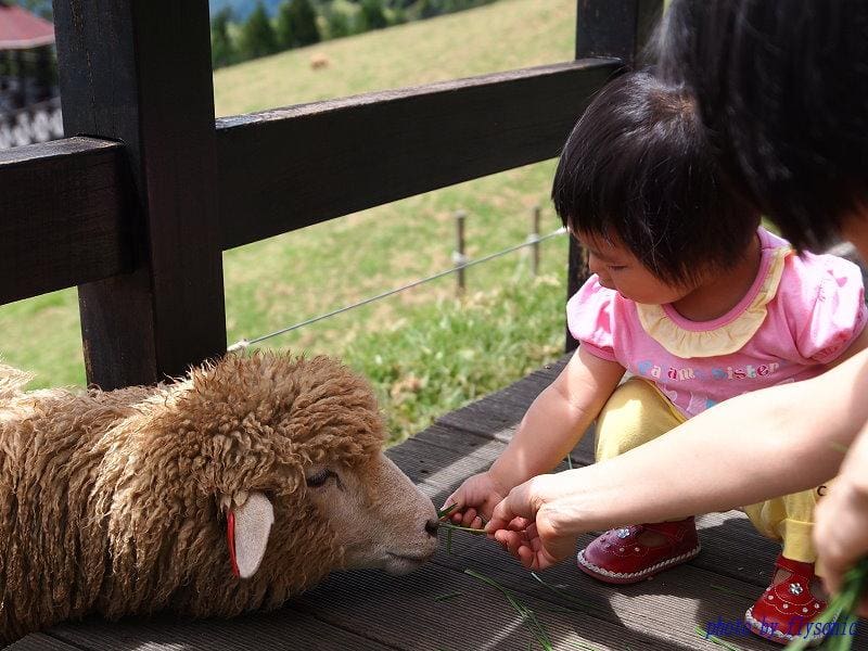 清境的青青草原上的小綿羊是目前小寶貝最愛的動物之一,每次一問她要不要去看小綿羊,她就會回答說:「好」,小寶貝在這裡可以待上一個小時以上,而且都一直在餵小綿羊。