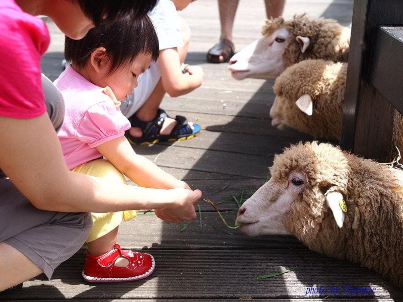 ↘這是第一次去餵食小綿羊時拍的,在媽媽細心的協助下,總算成功的第一次餵食給小綿羊。