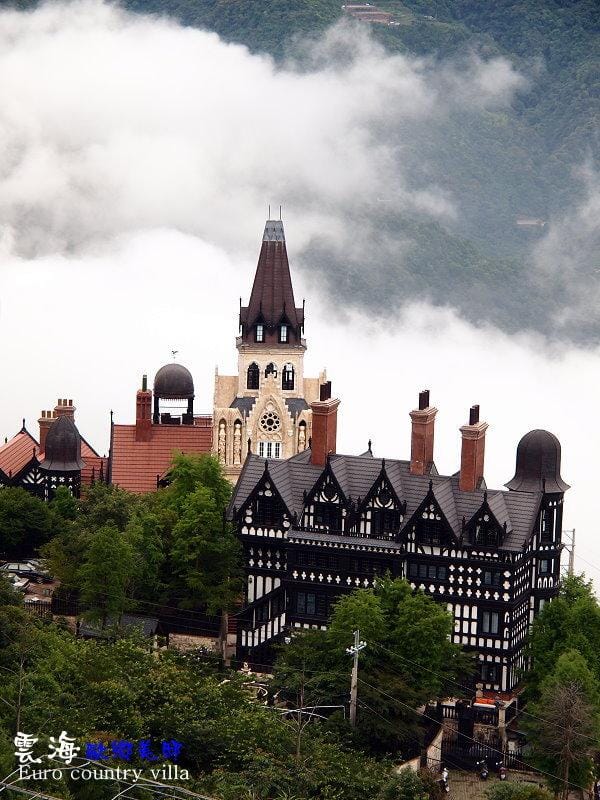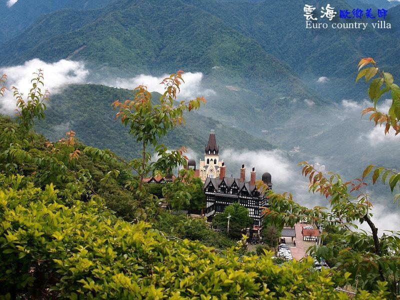 ▲雲海漸漸散去後,從民宿花園所看到老英格蘭民宿的景色。