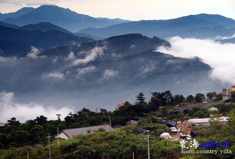 ▼隔一天起來,是星期六,由於受到桑達颱風的影響,清境是陰天。雖然是陰天但是雲層非常高,能見度也很好,所以覺得視野不錯,而且蠻涼爽的。當然就無法拍到藍天白雲搭配這間民宿的景色,民宿主人告訴我說,如果天氣很好的話,他們這裡拍起來的照片是非常漂亮的。