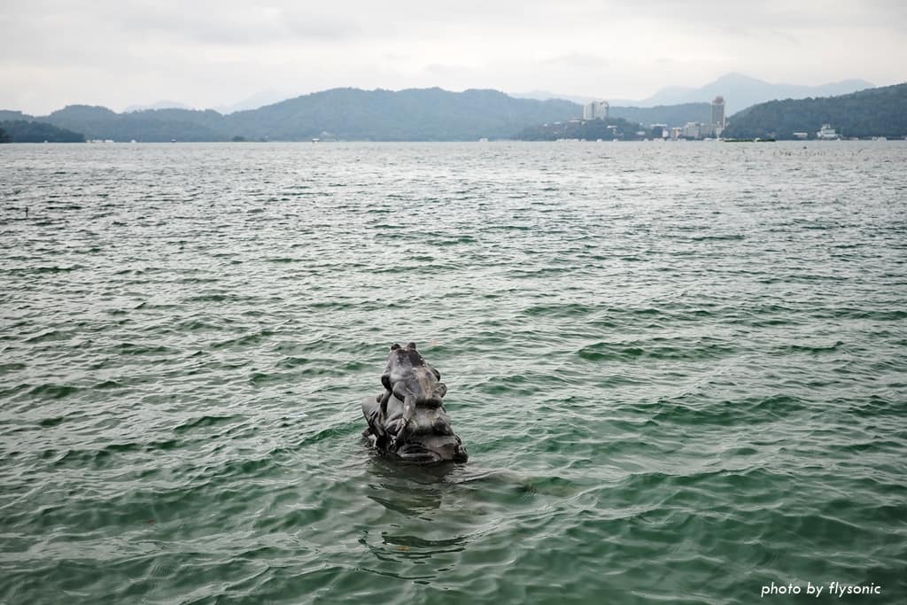 「水蛙頭步道」可說是日月潭代表性的步道之一,步道終點的水面上有九隻青蛙疊羅漢的雕像,可以測出日月潭的水位到哪裡;而且青蛙的雕像活靈活現的,非常討喜。