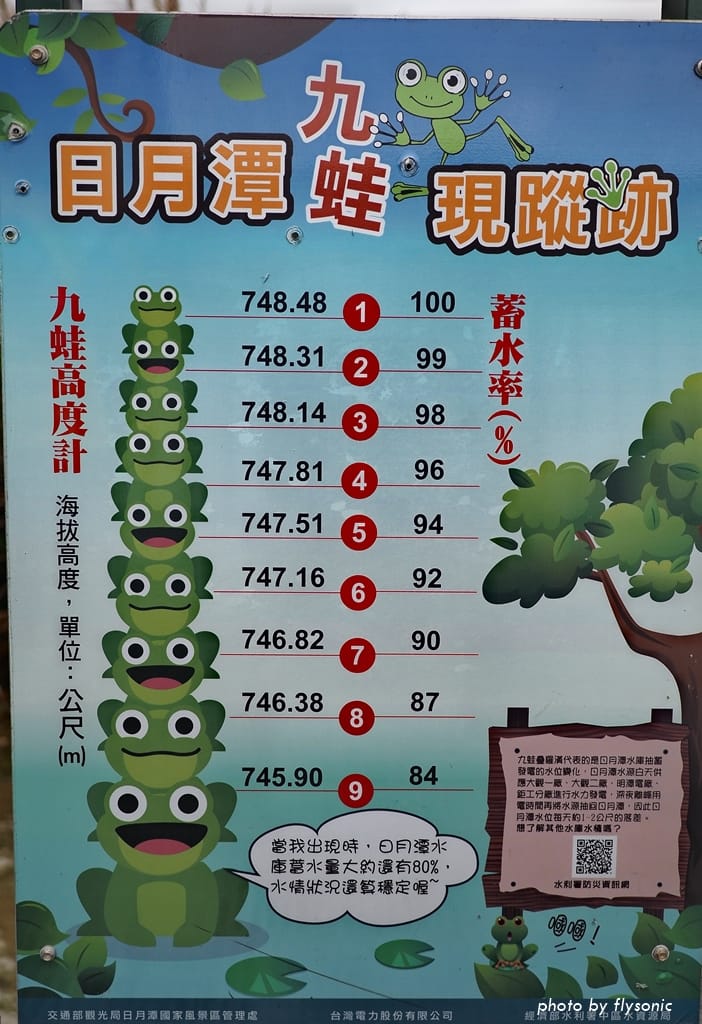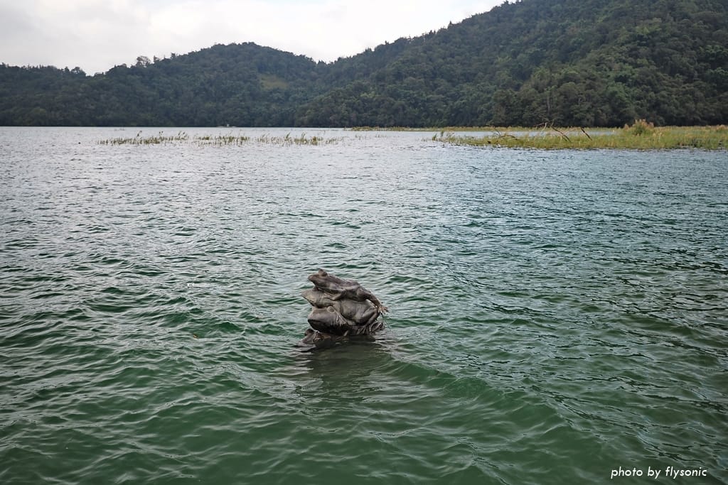 由於日月潭抽蓄發電的緣故,遊客在同一天的不同時段,或不同次的造訪,露出水面的青蛙數量都不一樣,非常有趣。