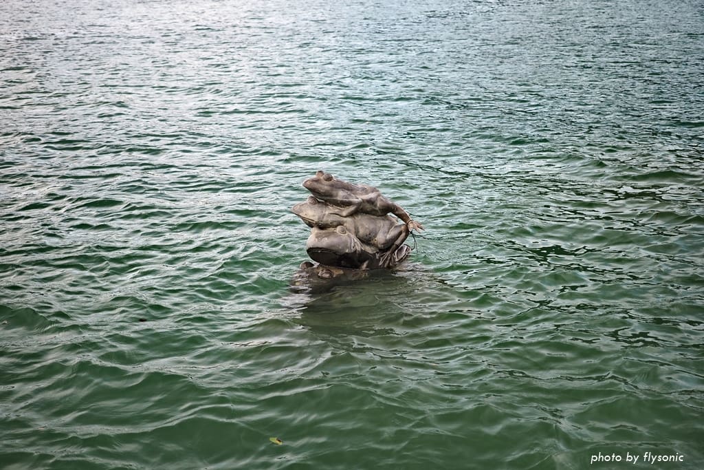 每個遊客都想跟九隻青蛙照相,青蛙在水面上,位置比較低,要合照並不容易,還會被欄杆遮住,所以我就拍別的風景。