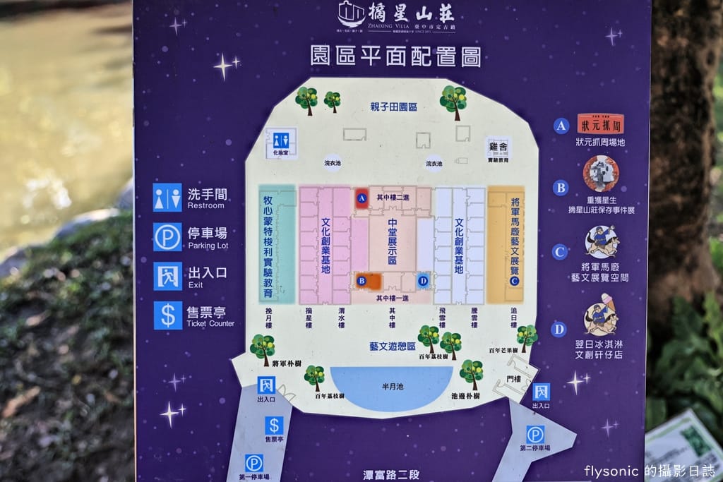 摘星山莊門票:一般人要100元,台中市民、65歲以上民眾、3歲以上未滿6歲兒童50元,設籍於潭子區民眾、未滿3歲兒童、身心障礙者免費。