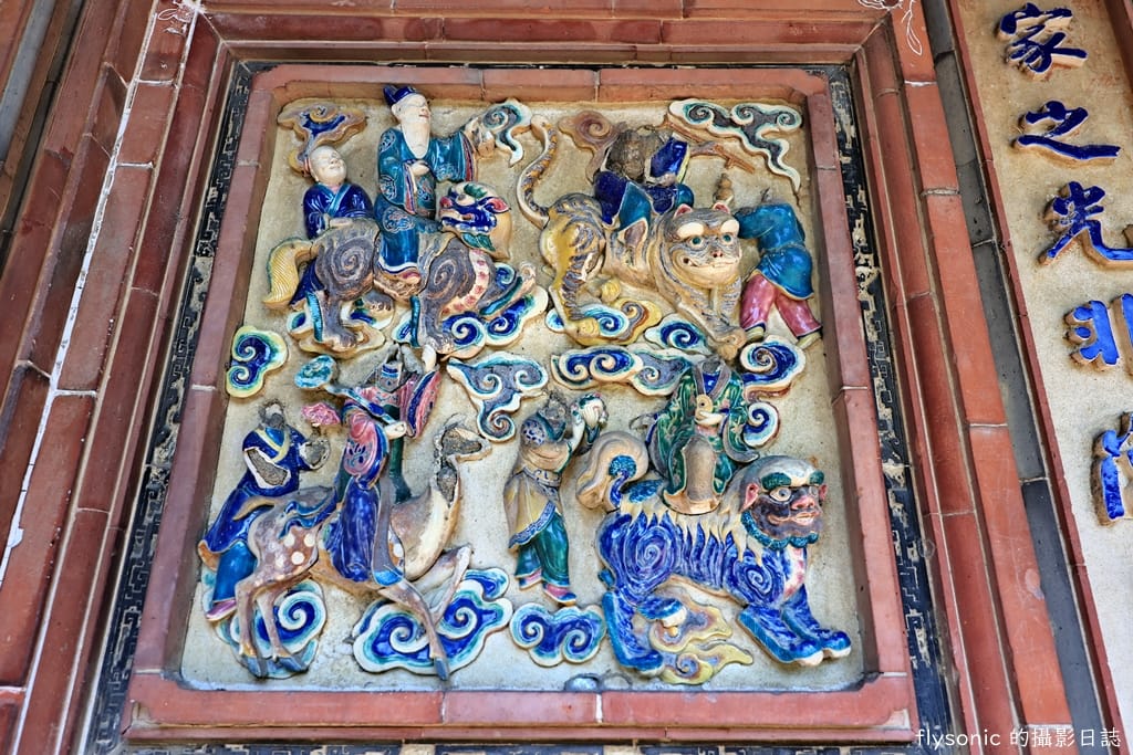 冠上加冠,有官上加官的祝福之意,是山莊裡面保存最好的交趾陶藝術品。