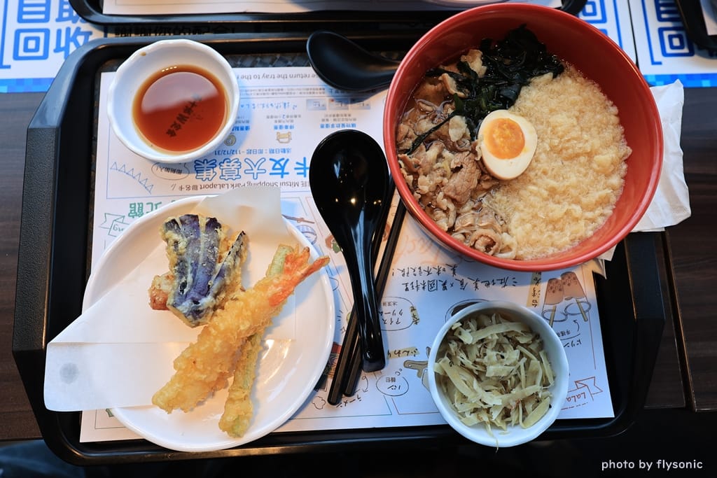 烏龍麵、炸蝦、炸天婦羅套餐。