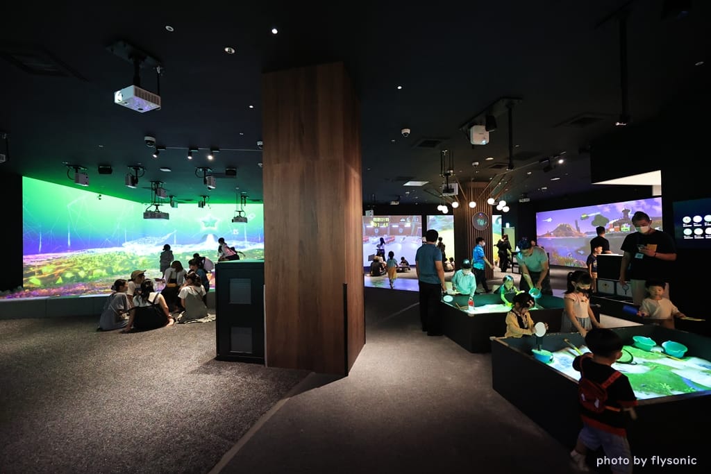 半開放式的設計,可以讓大小朋友在圍牆外觀看,還有多種的投影互動遊戲體驗,讓孩子們能玩得更加盡興。