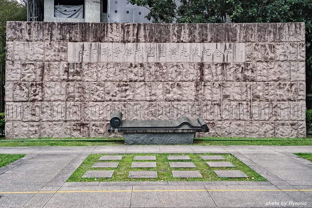 回到外面的廣場,有個抗日戰爭勝利暨台灣光復紀念碑,用歷史長軸的概念呈現碑文。