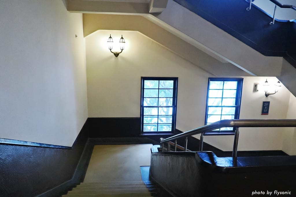 依照井手薰的設計,公會堂的外觀像是一個個方塊堆疊起來,從上圖的角度看就知道,高低落差之處,形成視覺上的變化趣味,是蠻厲害的設計。