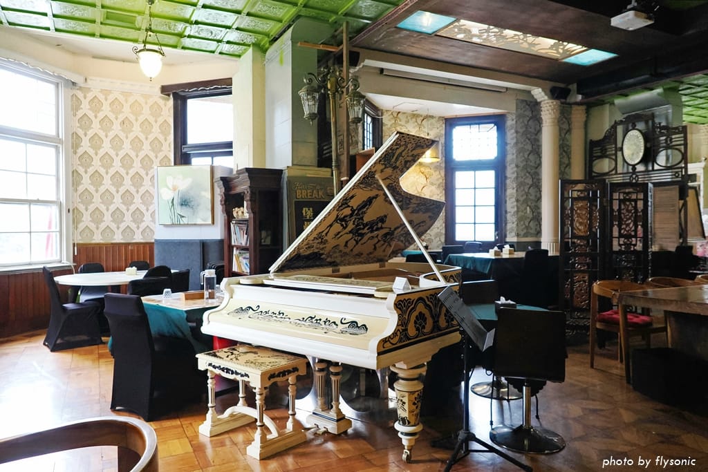 回到咖啡廳入口,走進去就看見一台美麗的古典彩繪鋼琴。