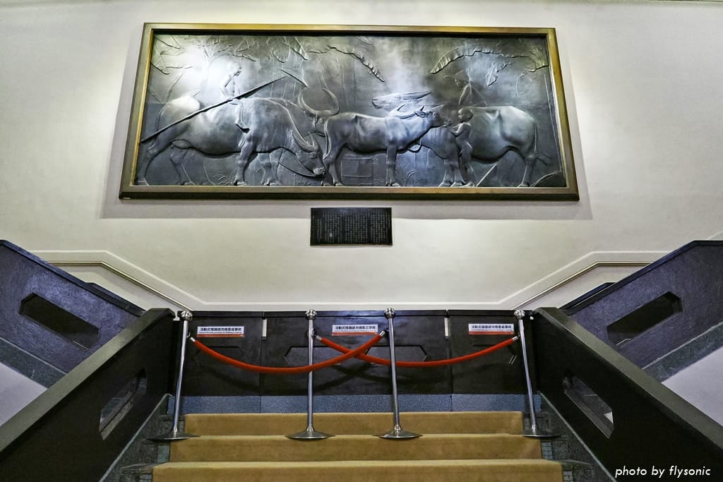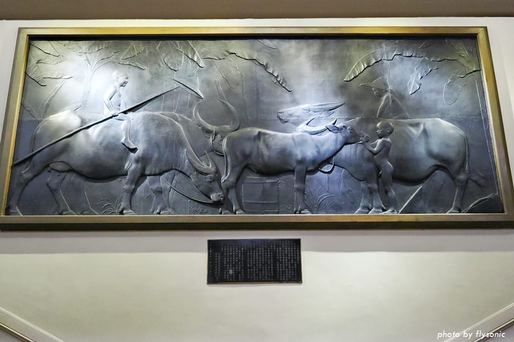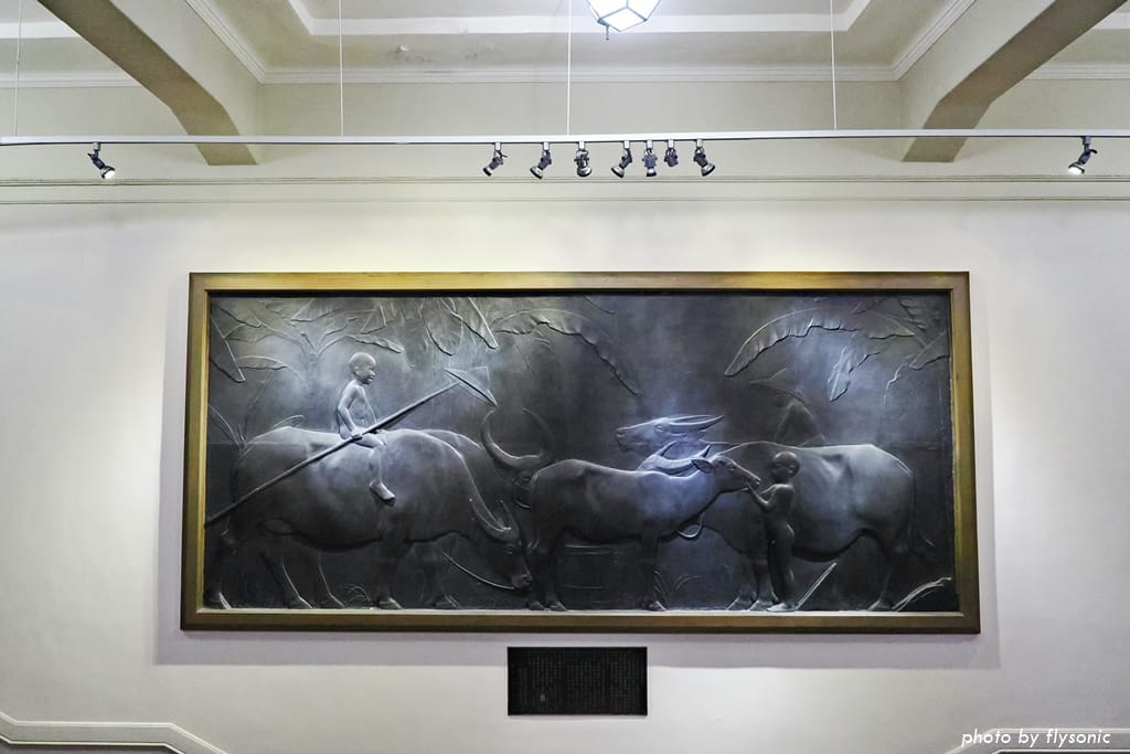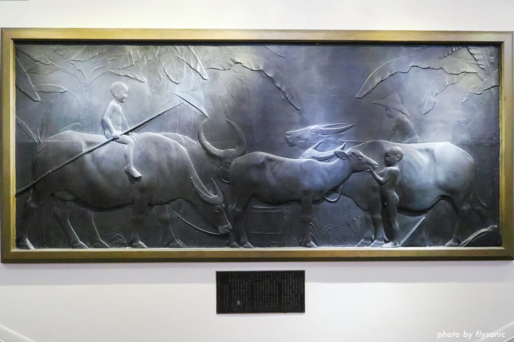這是台灣本土雕塑家黃土水的浮雕大作。黃土水是東京美術學校科班出身,這幅水牛群像構圖完整、層次分明、表情生動,是台灣近代美術的標竿之作,被指定為「國寶」。