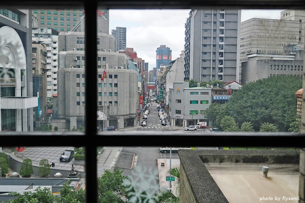 透過玻璃窗看,筆直的街道底端就是紅色的「北門」,這個位置真的太棒了!
