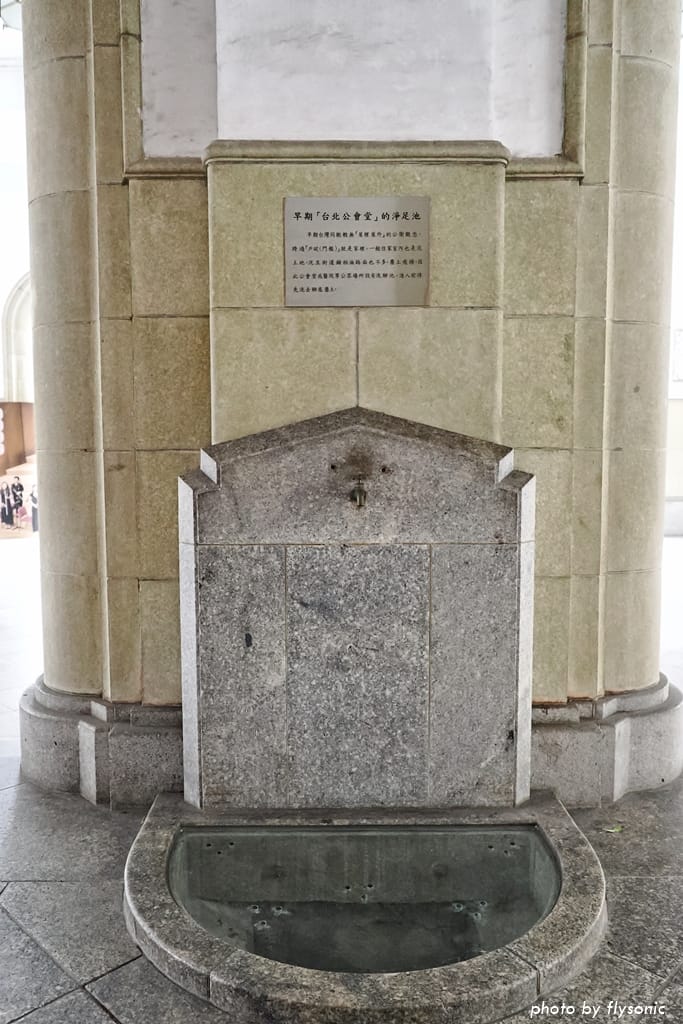 門廊很寬敞,方便民眾聚集或避雨。入口處設置淨足池,民眾入內之前,先清洗鞋底污泥。