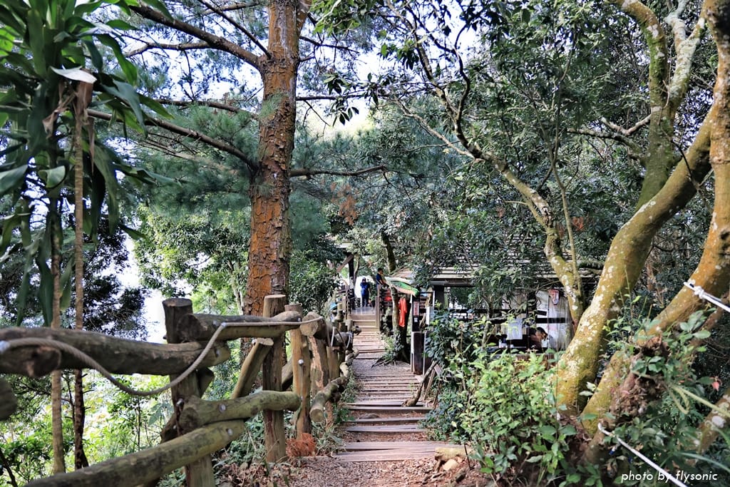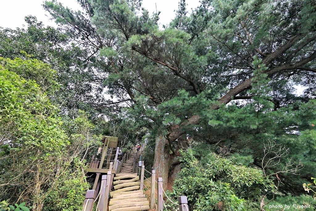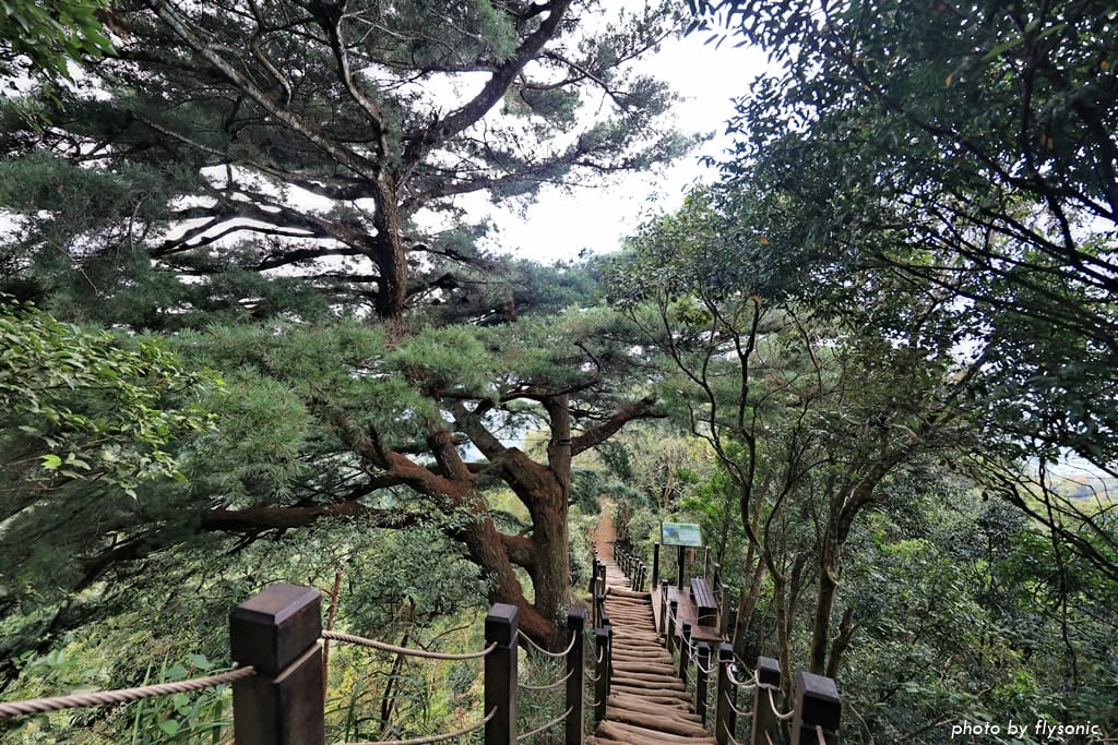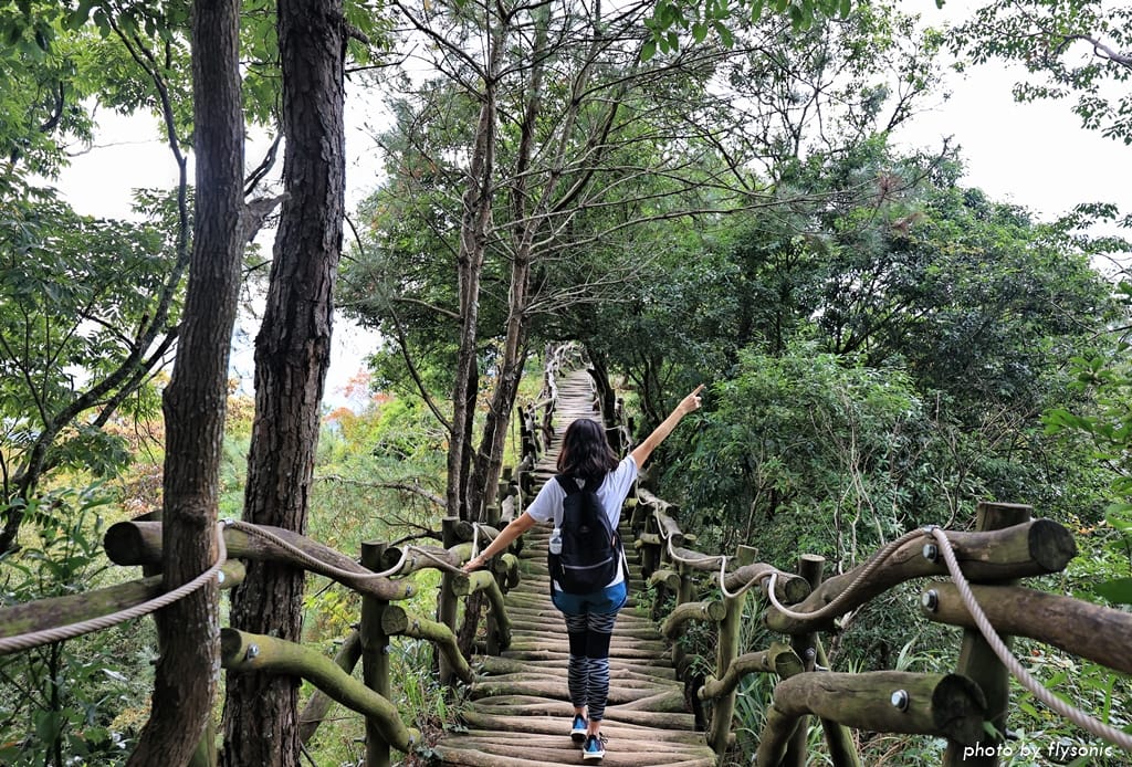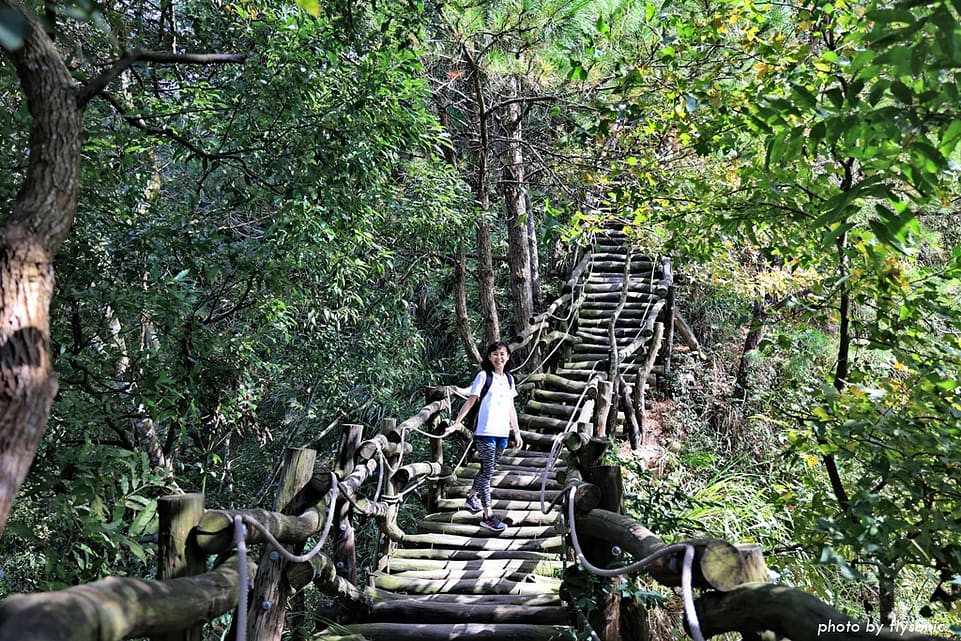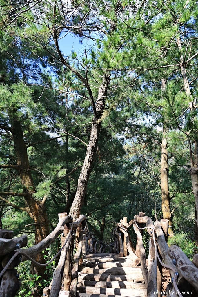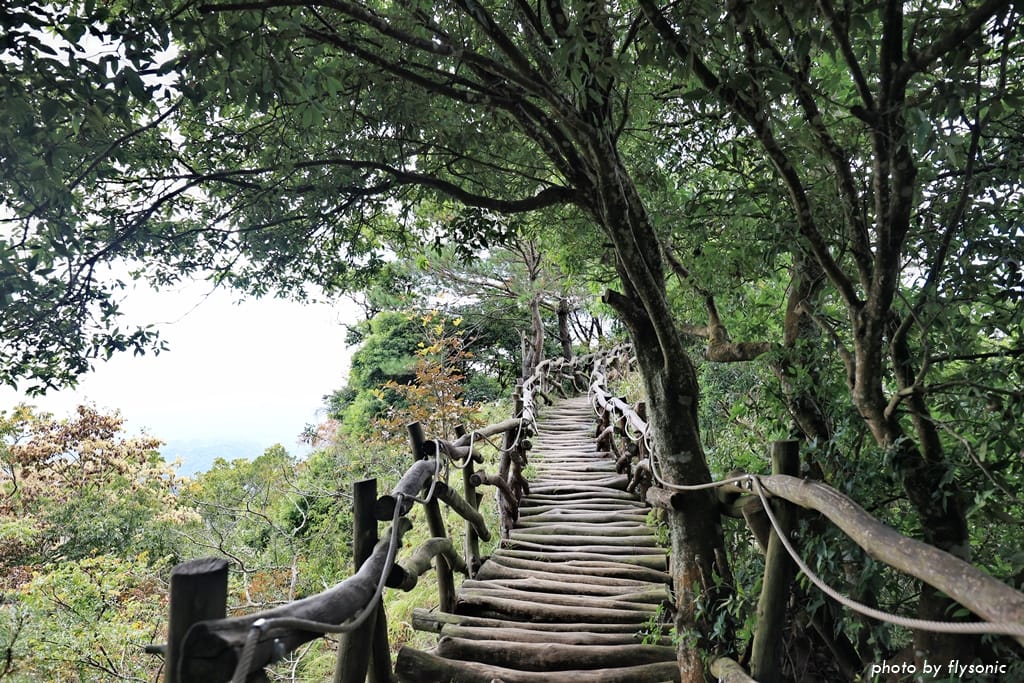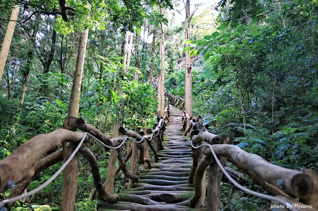 這連續陡坡真不是蓋的,不停往上爬,如果是一般樓梯還好,走這種圓木步道真是累。