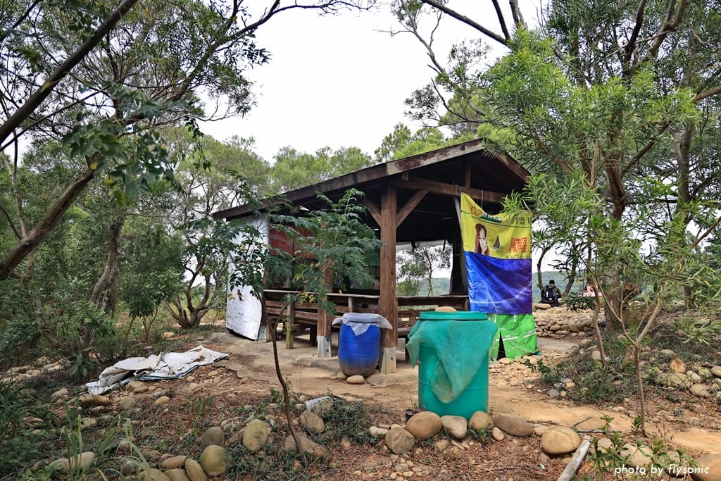「永壽亭」被包得像一個工寮,裡面有桌椅,還有瓦斯爐、炊具,看得出有山友經常來這裡休息。
