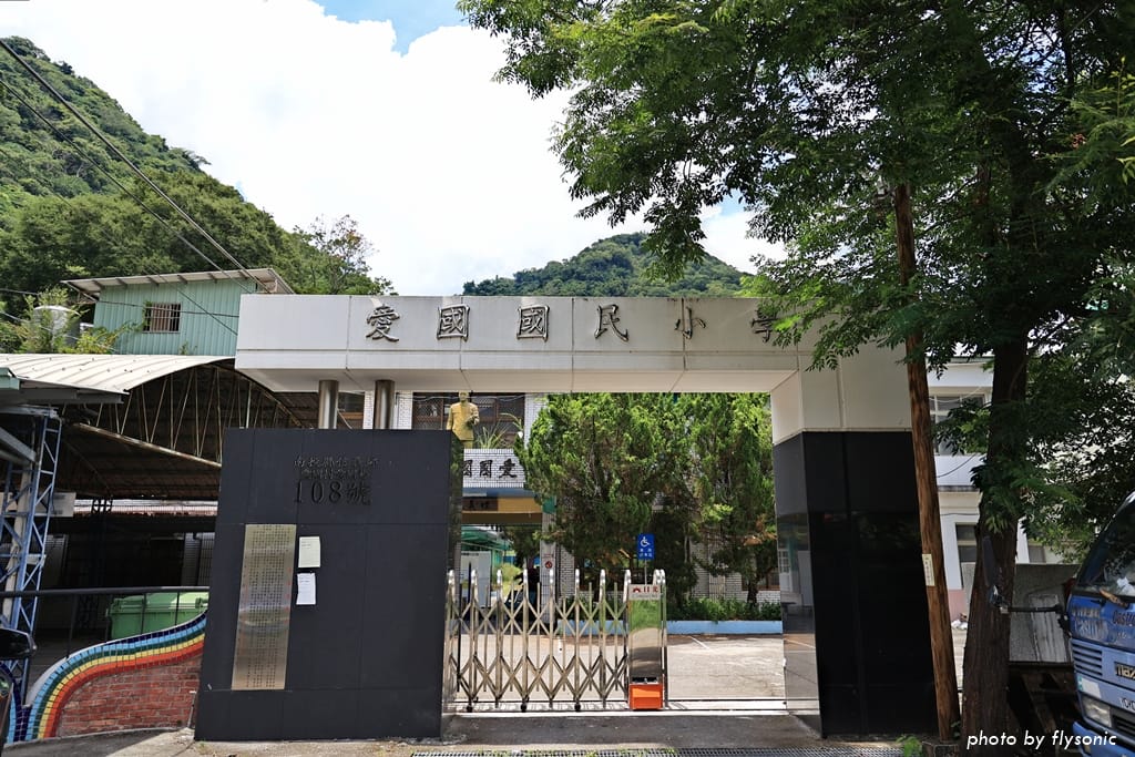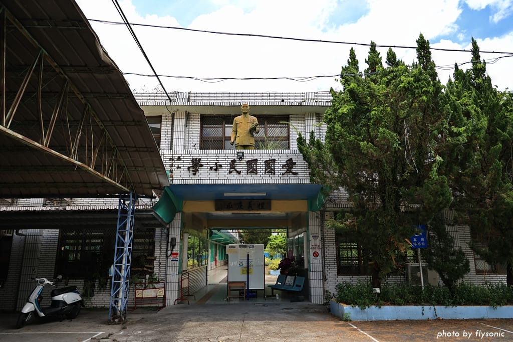 充滿古早味的愛國國小,大門上矗立著蔣公銅像。
