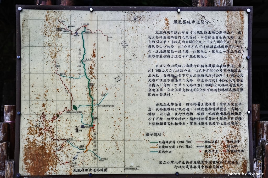 鳳凰嶺線步道是一條長達 13 公里,從海拔 600 公尺爬到 2000 公尺的步道,分為南、北嶺線步道。