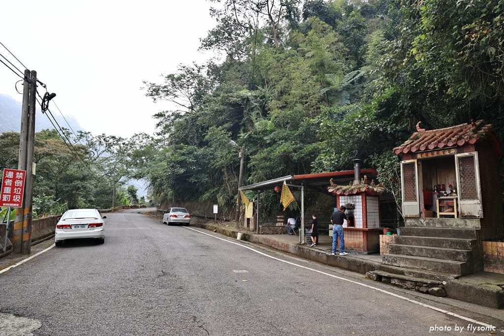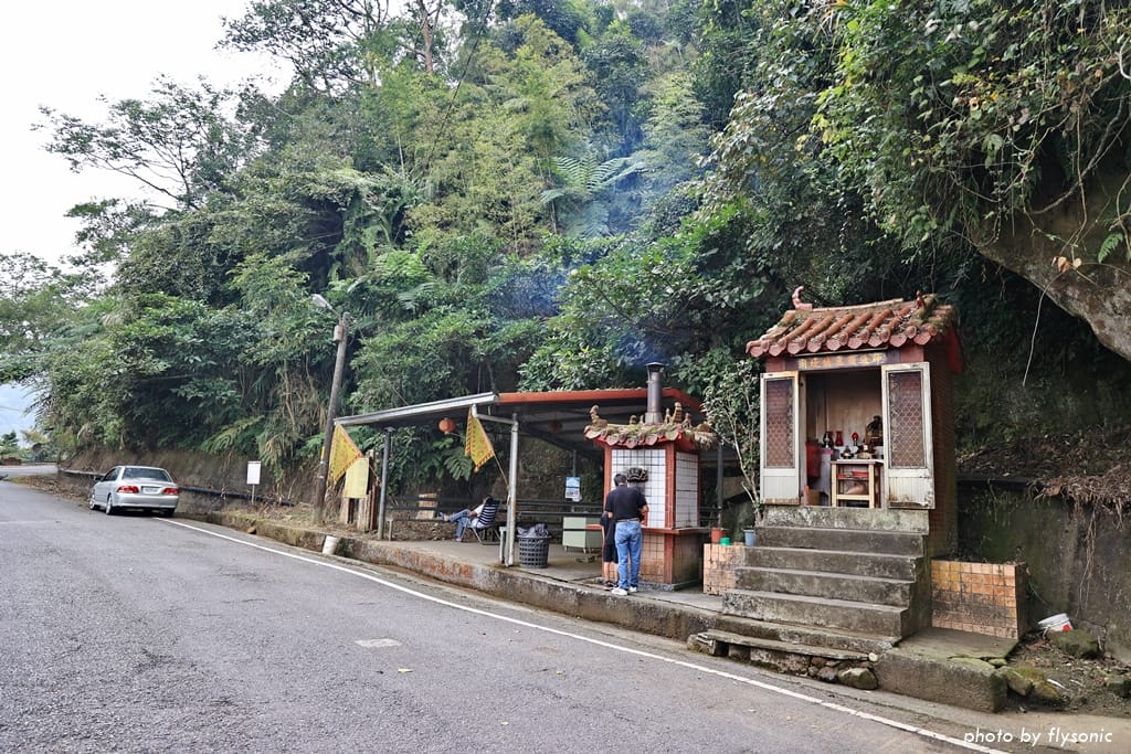 幾分鐘之後,就會看見右手邊有一間土地公廟及簡易鐵皮屋,原來這裡就是鳳凰眼步道的入口。