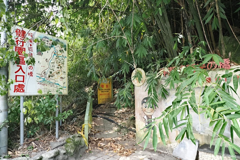 我在這裡亂繞,終於在「自愛橋」旁邊找到園區的入口之一,有八通關古道的標示。