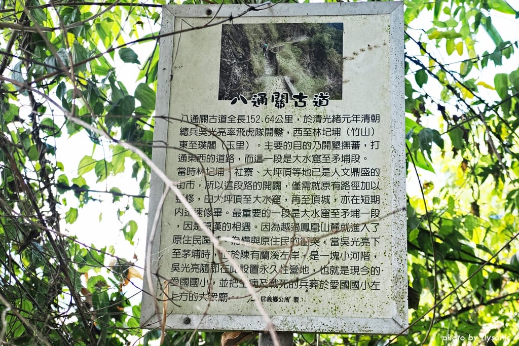 到了信義鄉,陳有蘭溪旁的愛國國小是營盤址,坪瀨琉璃光園區原本有吳光亮步道、大眾廟等遺跡,可惜園區已經關閉,沒能看見。