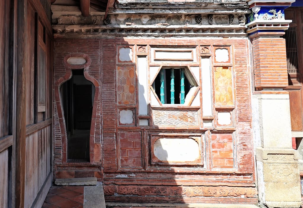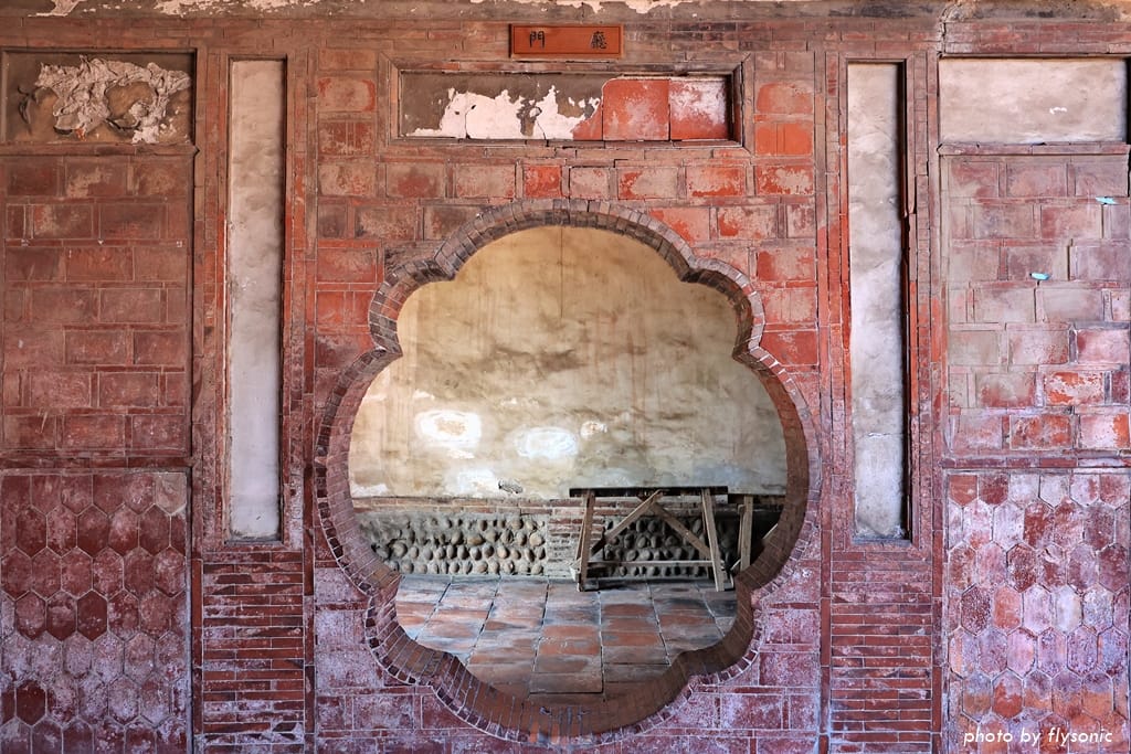 不同紅磚圖案組成的牆面,是磺溪書院最大的特色。