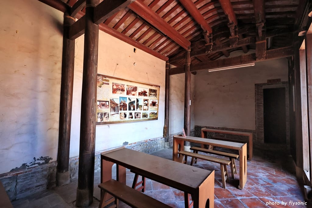 右側護龍的「齋堂」,裡面有磺溪書院的建築特色照片展。