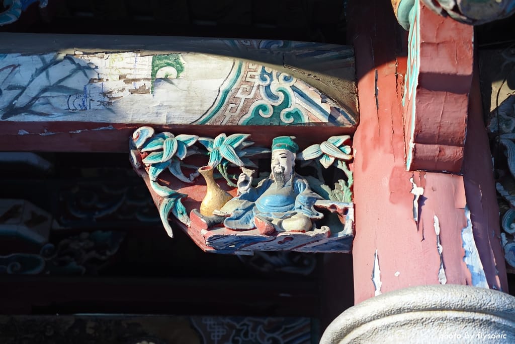 查了資料才知道,原來當初建廟的時候,為了避開沿海強烈的東北季風,刻意把廟蓋得比較低矮,日後修建時無法擴充,但也因此得以保留原貌,成為梧棲老街上珍貴的古廟。