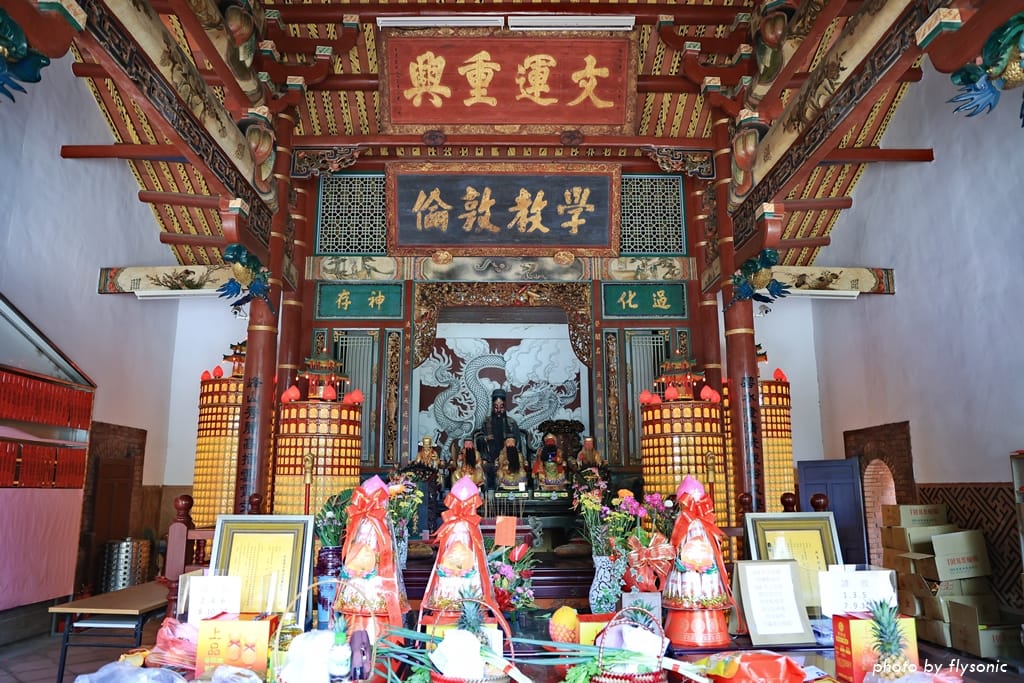 正殿主祀文昌帝君,陪祀文衡聖帝、孚佑帝君、魁斗星君、朱衣星君,以上合稱「五文昌」,有五文昌聖像。