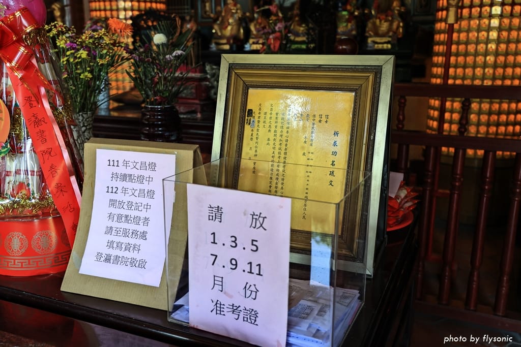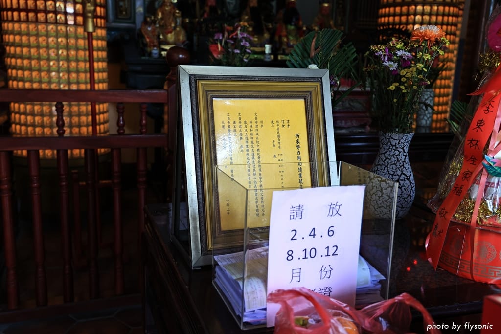 供桌上除了放置祭拜物品之外,最奇特的就是這個准考證的箱子。考生把准考證放進去,祈求文昌帝君保佑金榜題名。