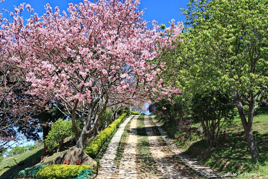 蓮臺山妙音淨苑近年來已經成為中部的賞櫻勝地,每到櫻花季時,上山遊客絡繹不絕,晚點來甚至還會塞在半路中。