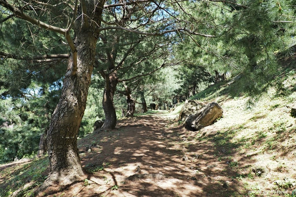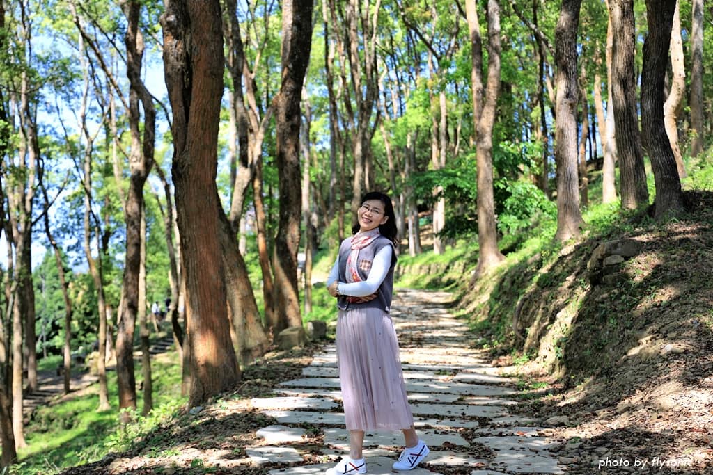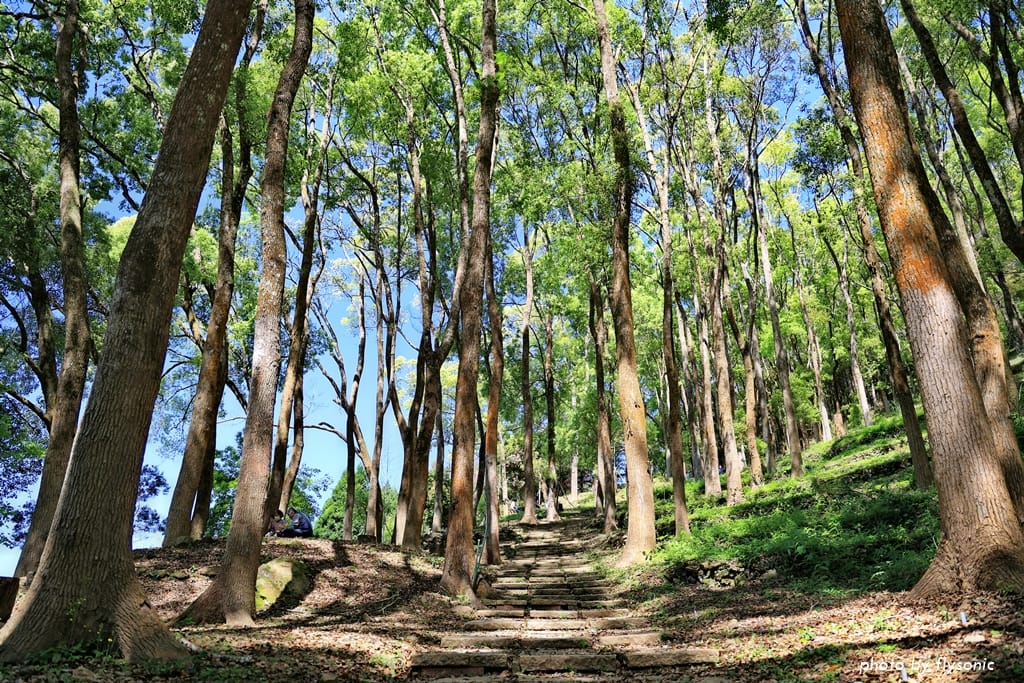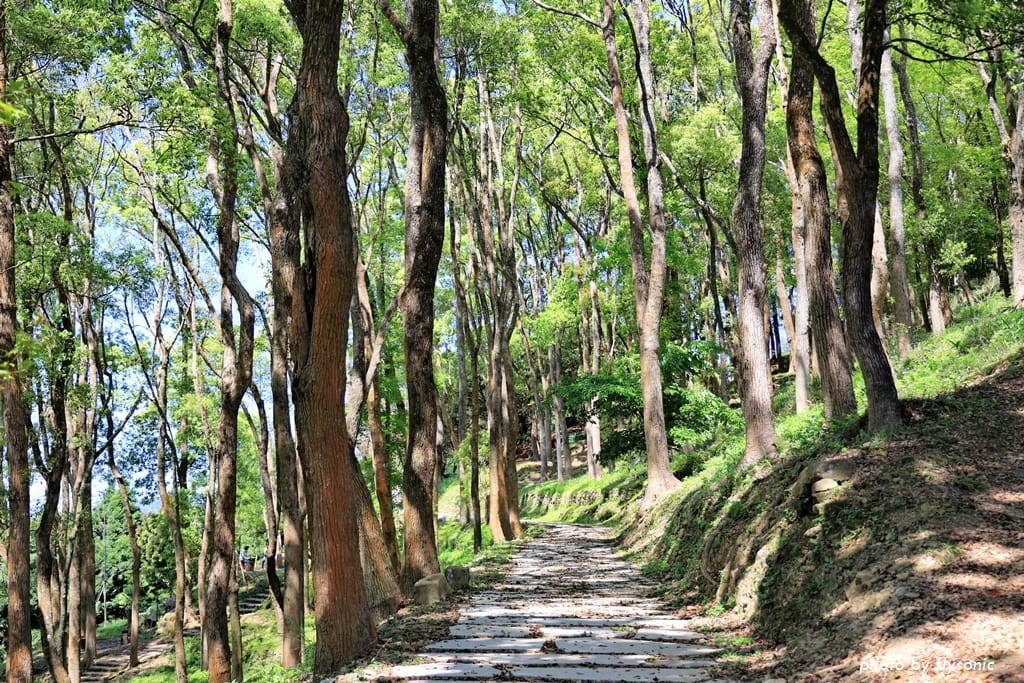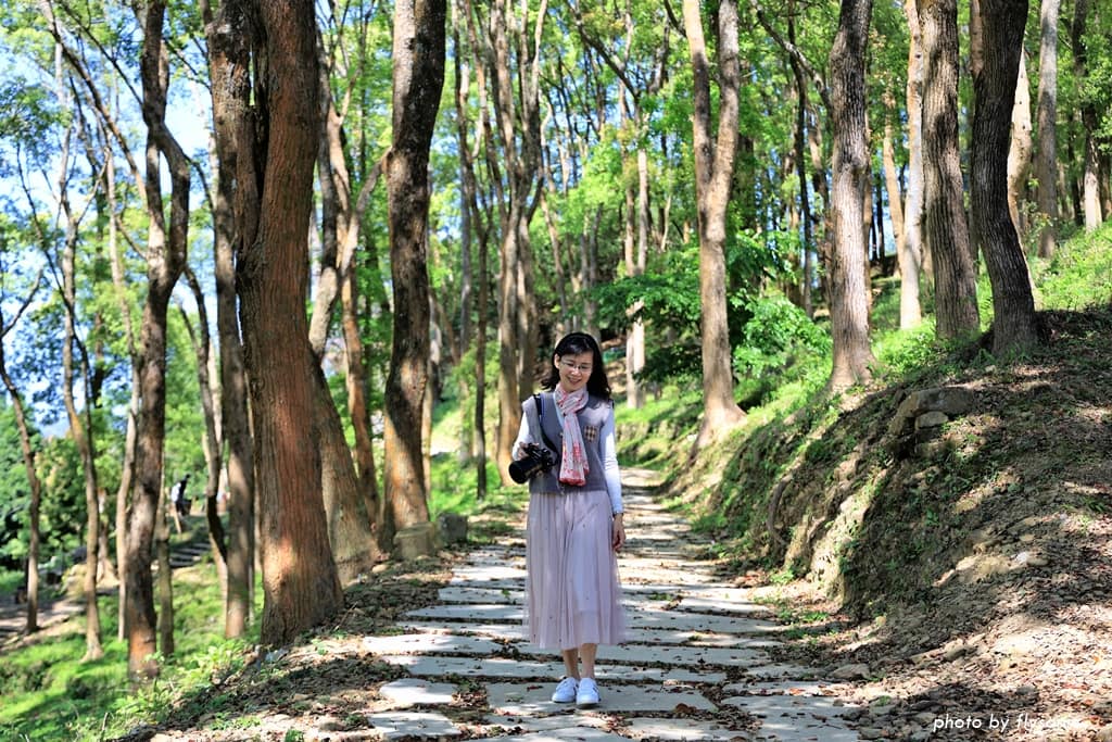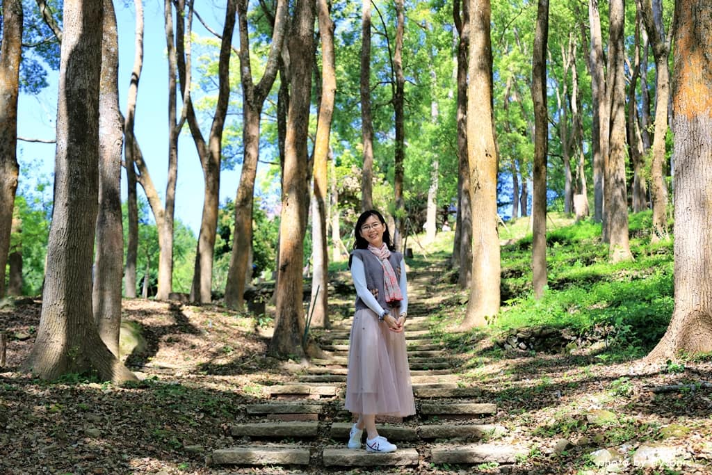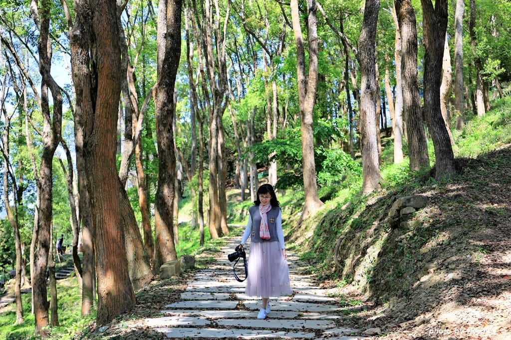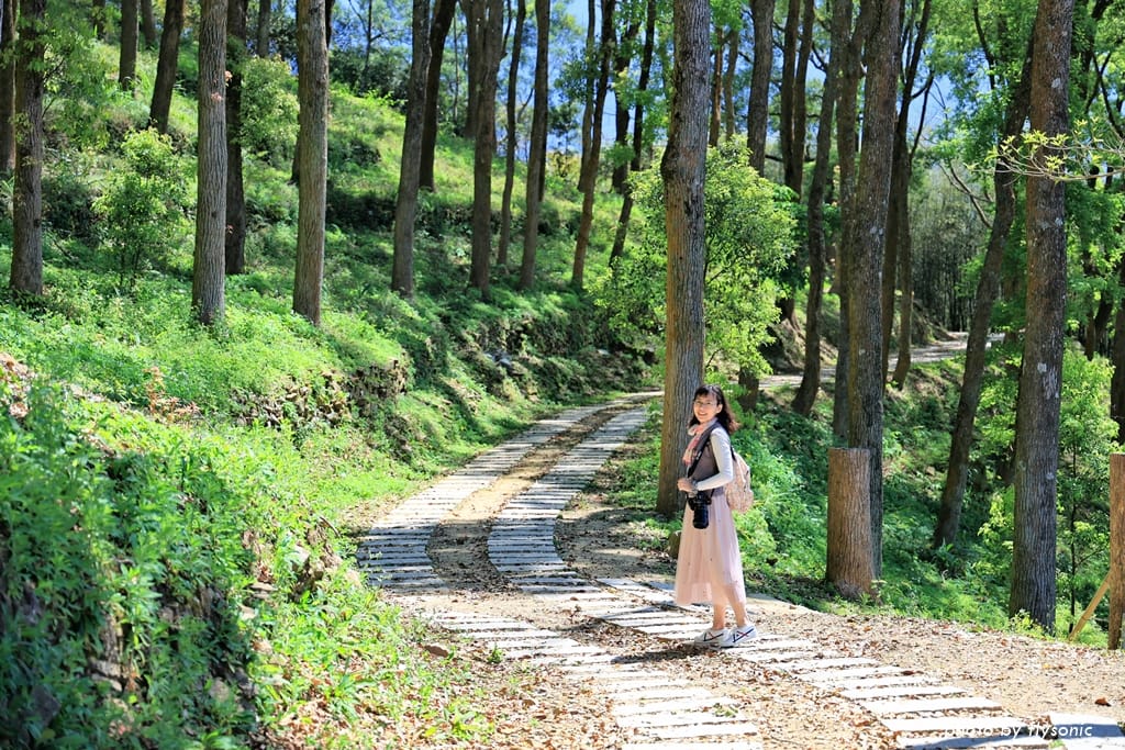 林間光影搖曳,白色石板路,我忍不住在這裡拍了很多張照片。