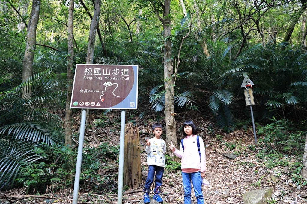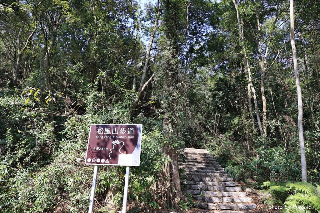 松風山步道有兩個出入口,一個在涉水步道對面(上圖),另一個在柑仔店旁邊。步道全長 2.5 公里。
