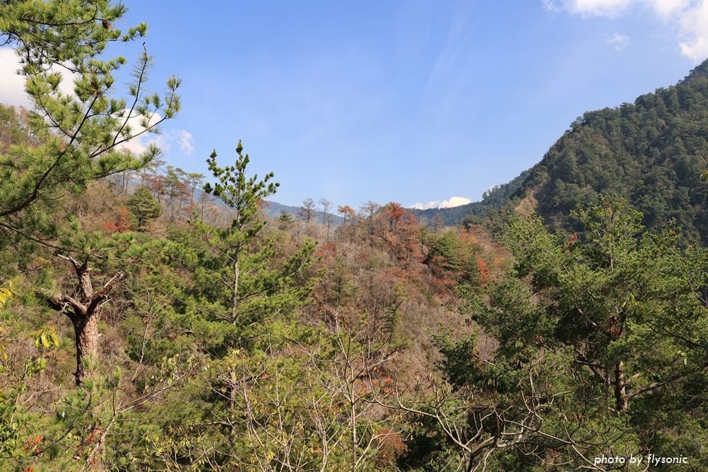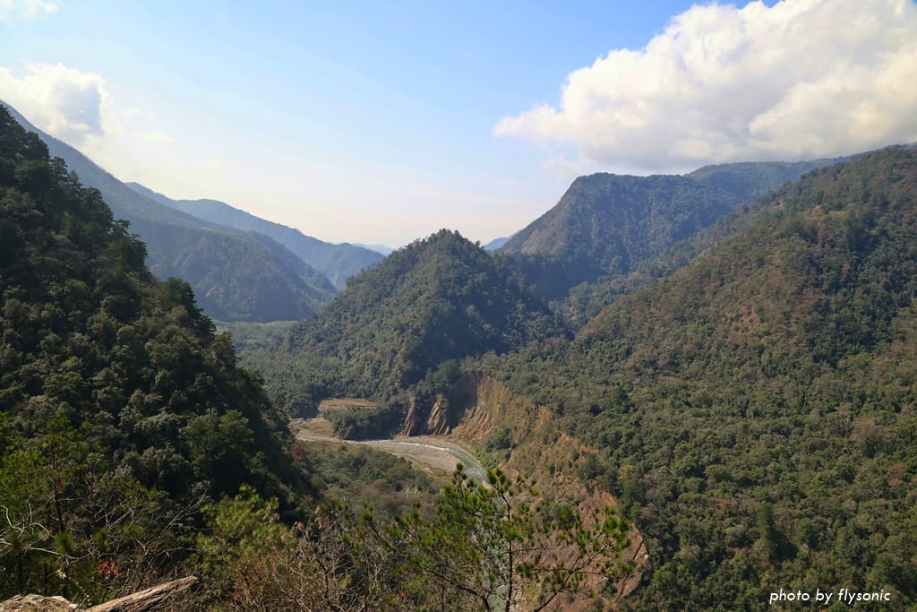 步道繼續爬升,來到一個轉彎處,突然出現北港溪谷的風景,蜿蜒的北港溪跟峭壁,還有陣陣涼風吹來!
