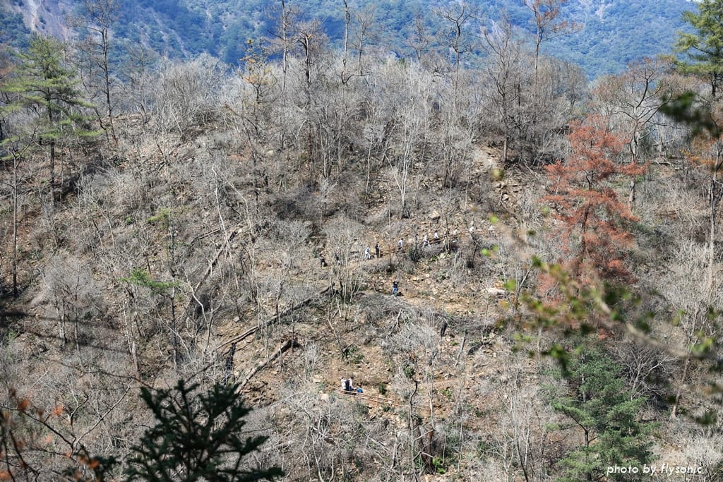 前面走起來景色普通,大家走得無精打采的,經過幾個之字型緩坡,高度上升之後,景觀比較開闊一些。
