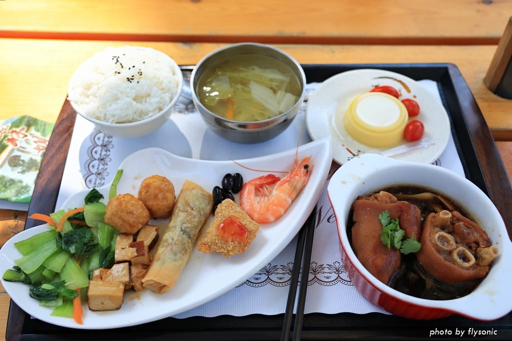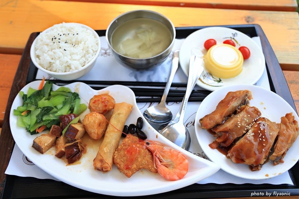 惠蓀林場的中餐廳本來在比較遠的販賣部那裡,提供合菜跟套餐,目前因為餐廳在整修,所以改到荷馨園。