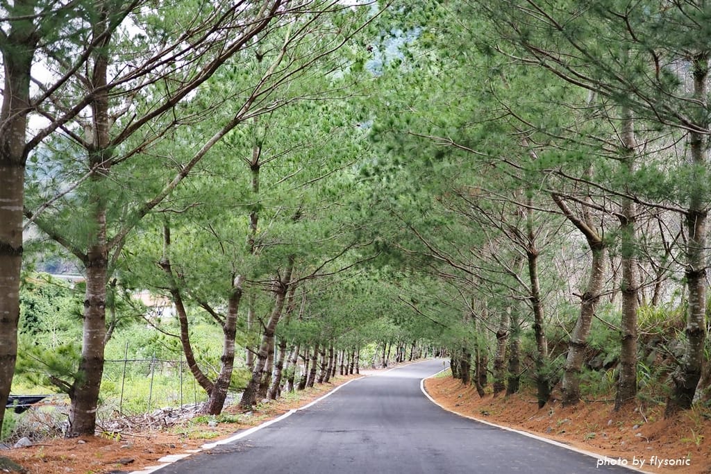 第二次開進去,轉入巷子裡,馬上就看到五葉松大道,道路兩旁整排翠綠的五葉松,沒有吹噓,是名副其實的五葉松大道。