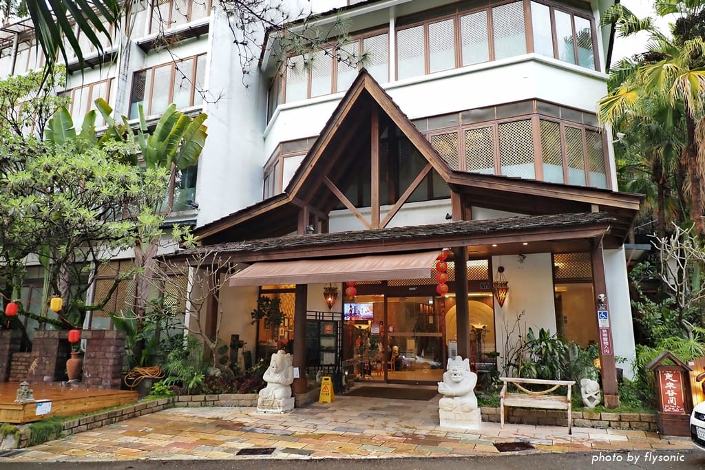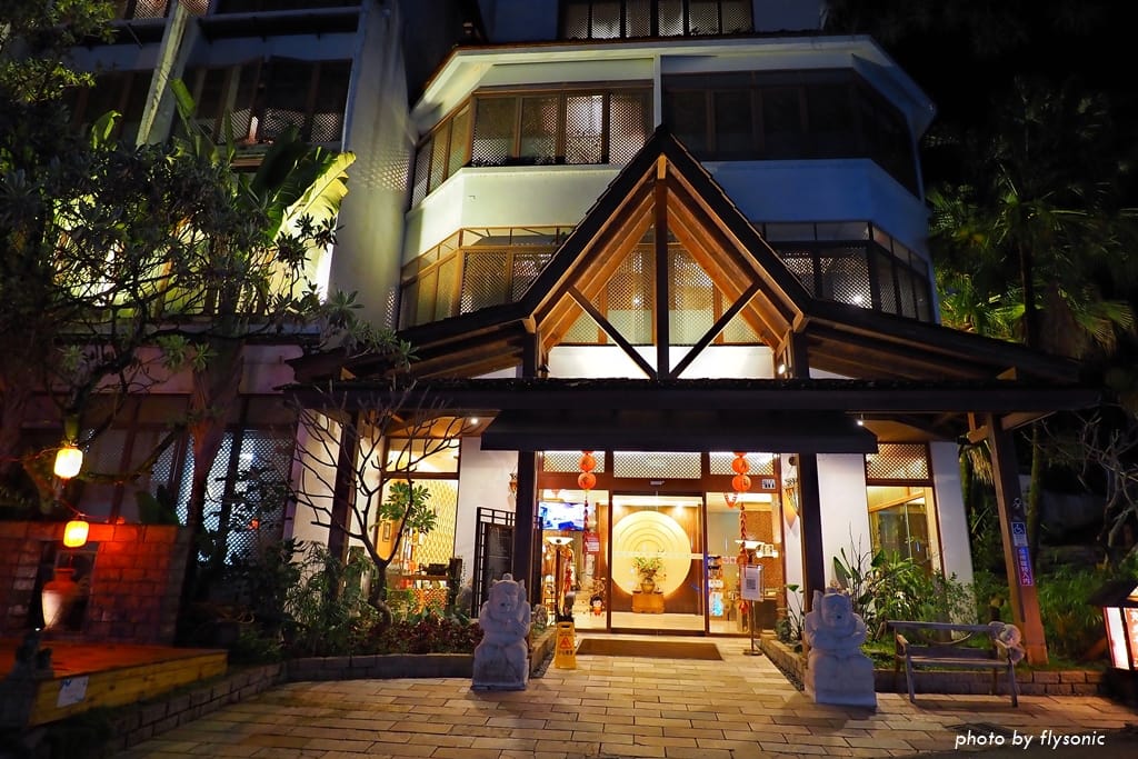 飯店建築設計採峇里島式南洋風格,周圍是熱帶南洋植栽,充滿濃厚的休閒風。
