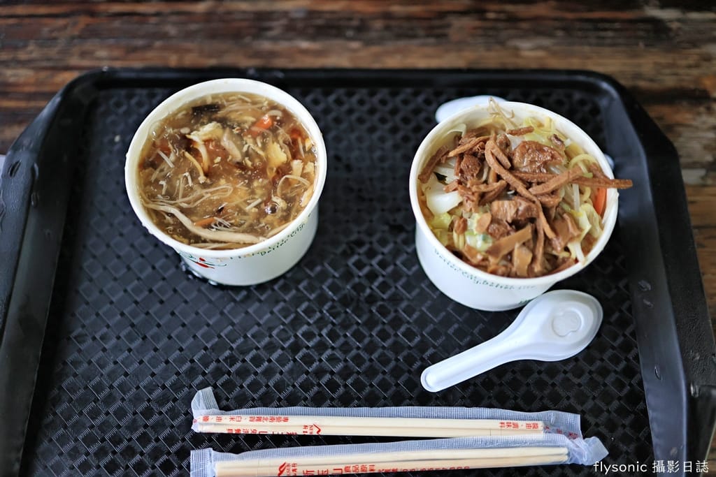 兩個竹筒飯、一份雞湯、一份竹筍貢丸湯。