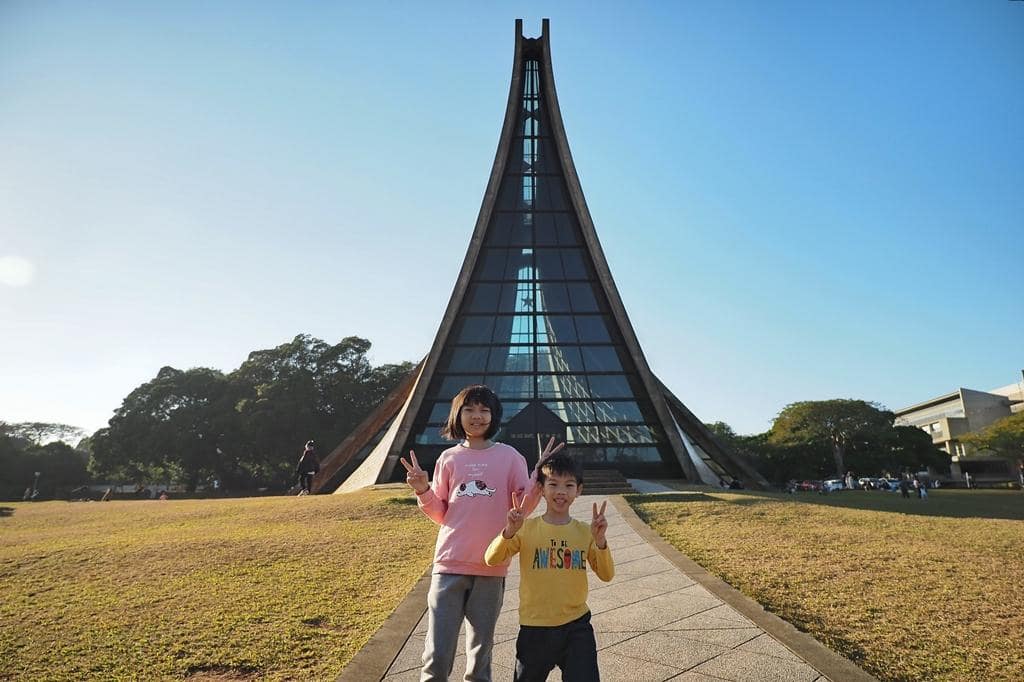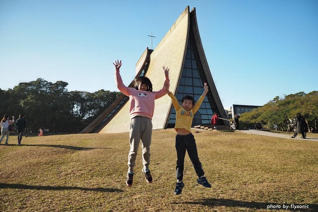 教堂座落在校園中央的一大片草地上,很適合帶小孩來這裡野餐、奔跑、玩球。