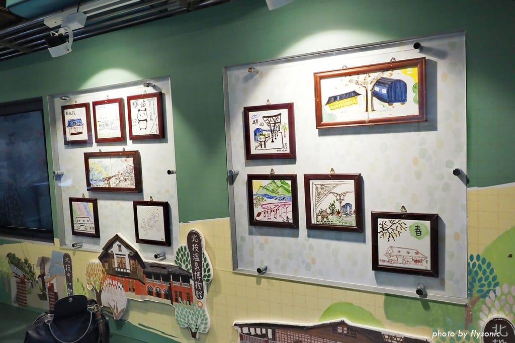 北投捷運站月台上的造景,展示新北投的觀光特色。