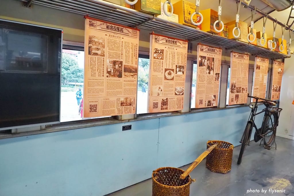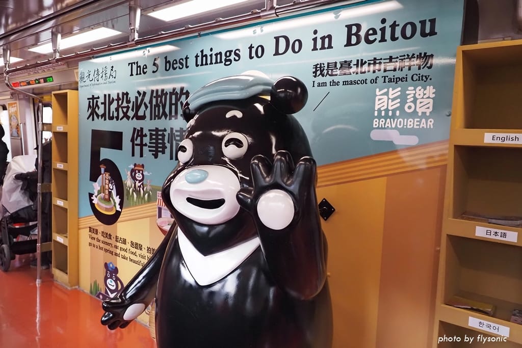 新北投支線的觀光列車只有三節車廂,為了配合新北投地區的溫泉新風貌,捷運公司改造列車,除了外觀有彩繪,連內部也有裝備,主要是在介紹北投地區的歷史、溫泉、美食、自然生態等等。