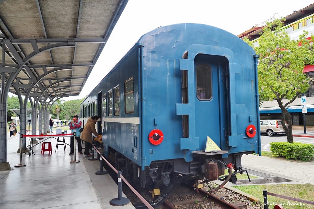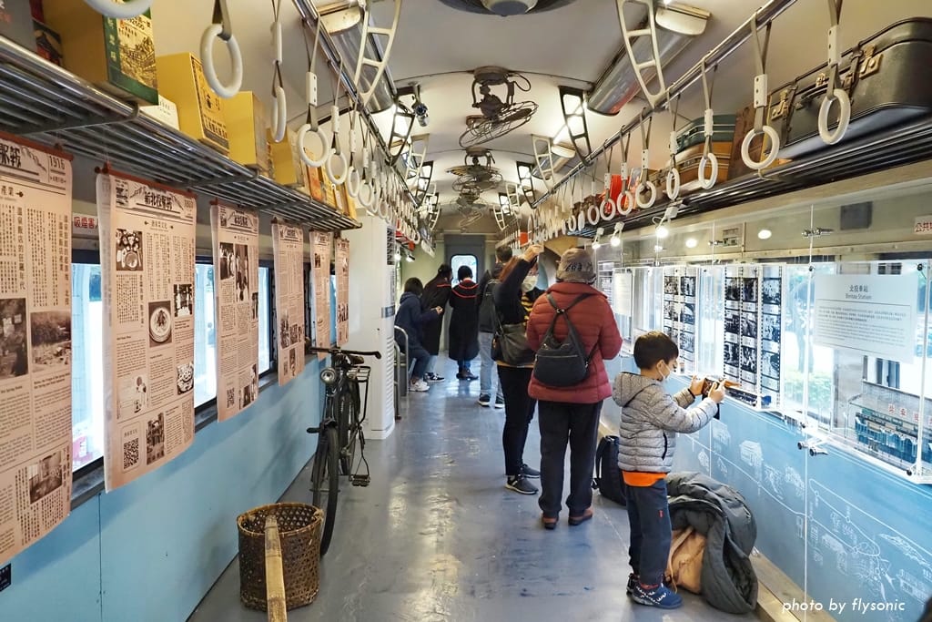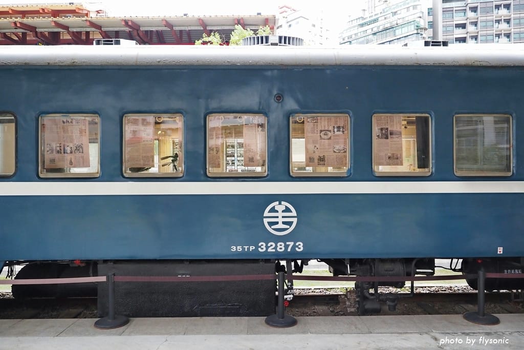 月台上展示過去曾跑過淡水線的 35TP32873 型三等普通客車車廂。