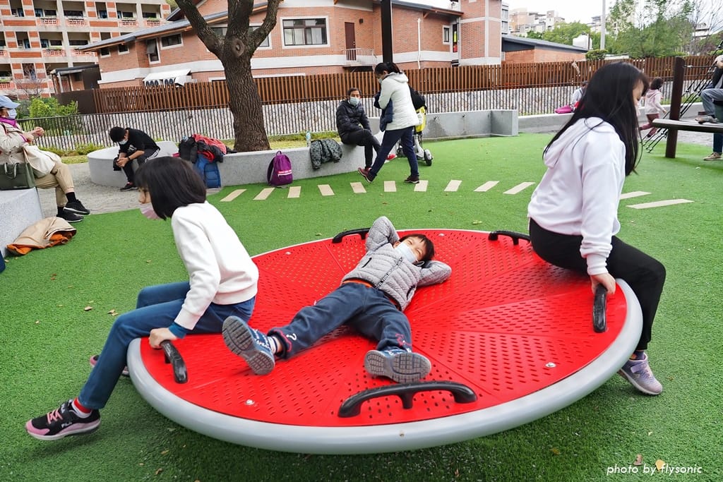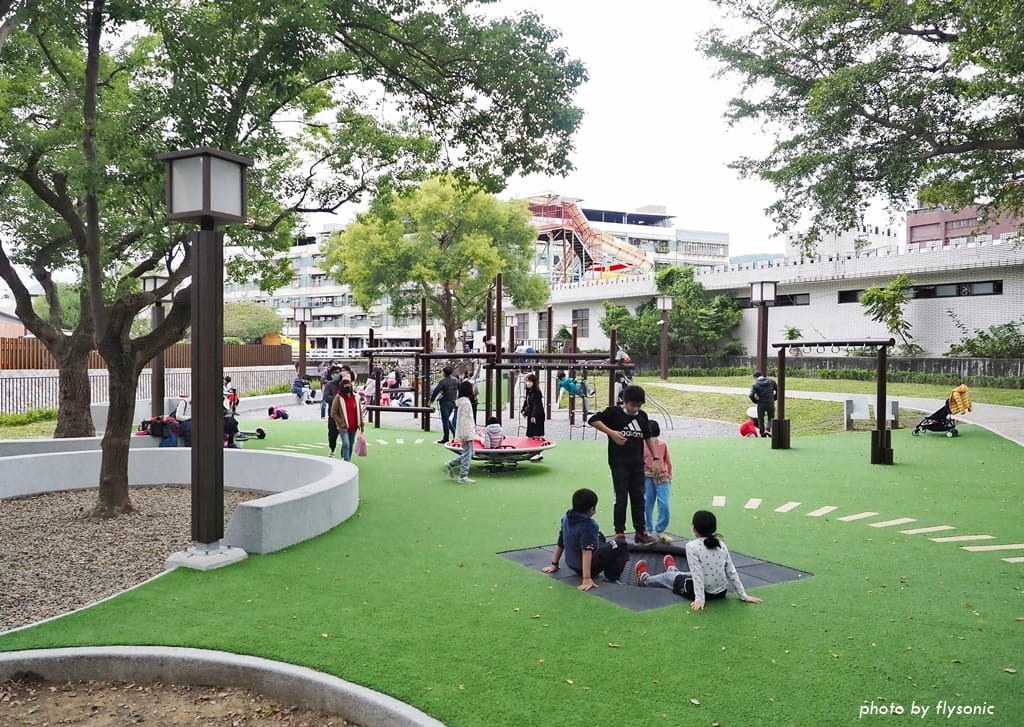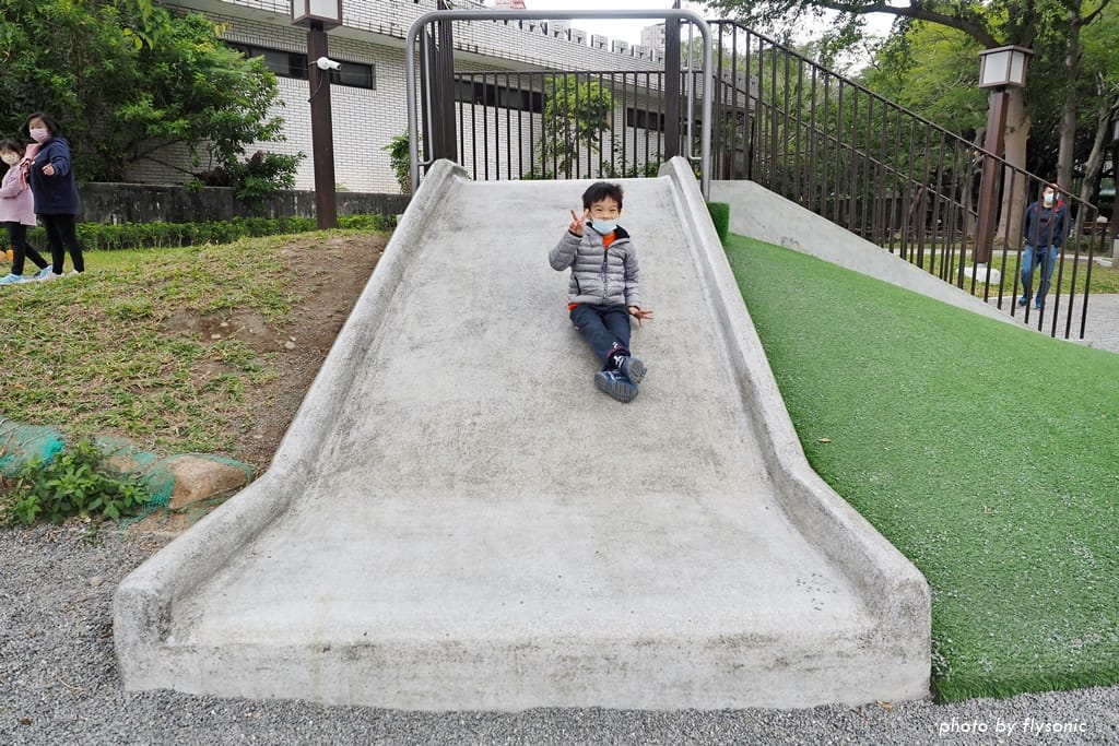 之後我們沿著大草皮一直走下去,有個公廁,過了公廁之後,就是兒童遊具區。