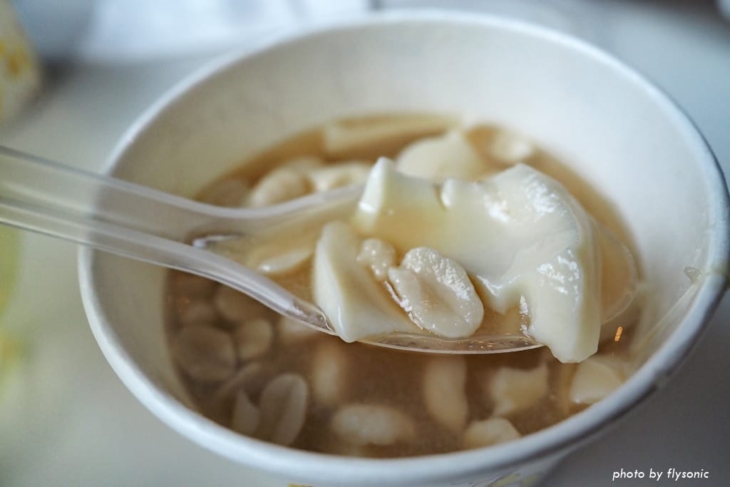 豆花本身非常滑順、非常嫩,花生吃起來好綿密,甜度可以跟店家調整,如果沒有特別說,湯汁也不會太甜,真的好好吃!